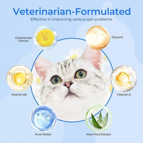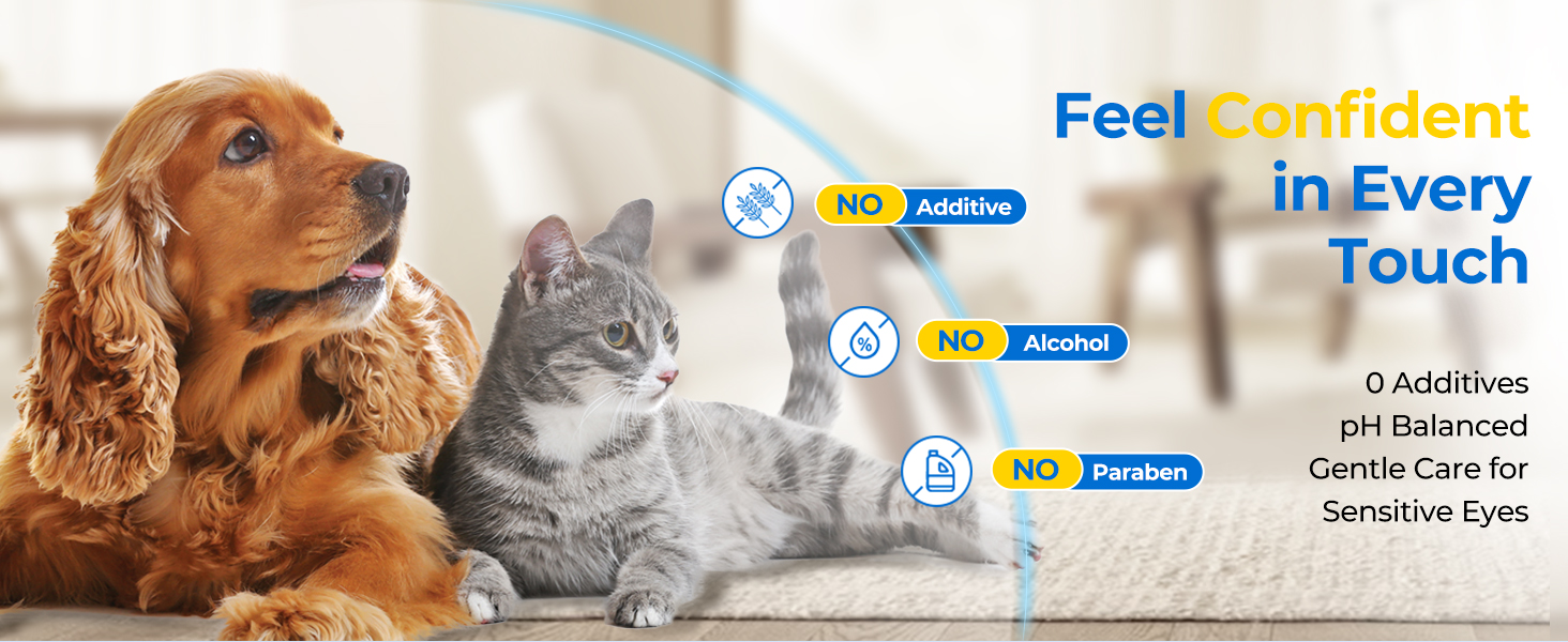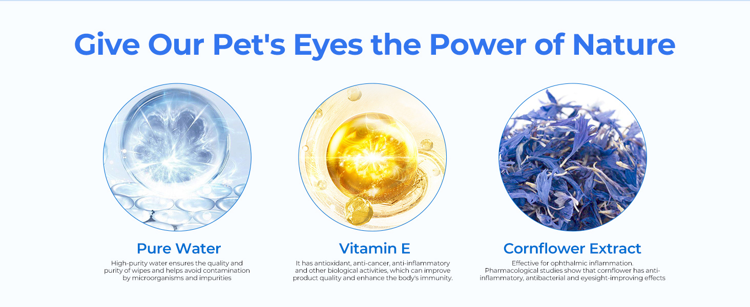 - SAFE INGREDIENTS, NO ADDITIVES, ZERO IRRITATION - Eye wipes are made with natural formula, matches our pet's pH levels. Aloe vera extract is rich in moisturizing factors and can deeply hydrate; chamomile extract has anti-inflammatory effects and relieves eye discomfort; and vitamins E and B2 enhance eye skin health